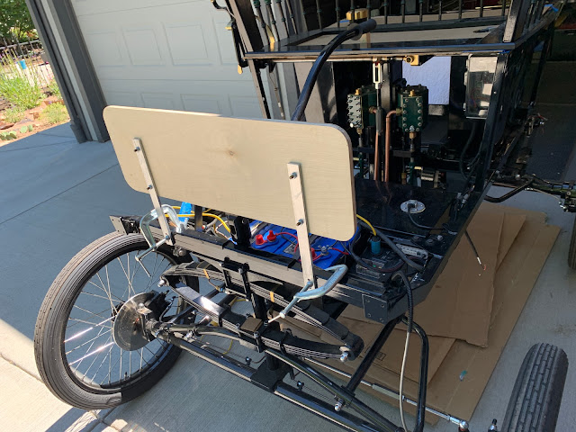 I decided to mount the box to a plate that was suspended from the main cross bar of the chassis/body. This will keep the box safer in the future when things get crowded in there. I mounted it as far away from the engine cylinders as possible.