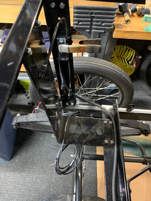 Next I mounted the lamps on the upper body frames, right behind the driver's seat. I used the brake and shifter quadrant as the determining measurement, and matched it on the other side.