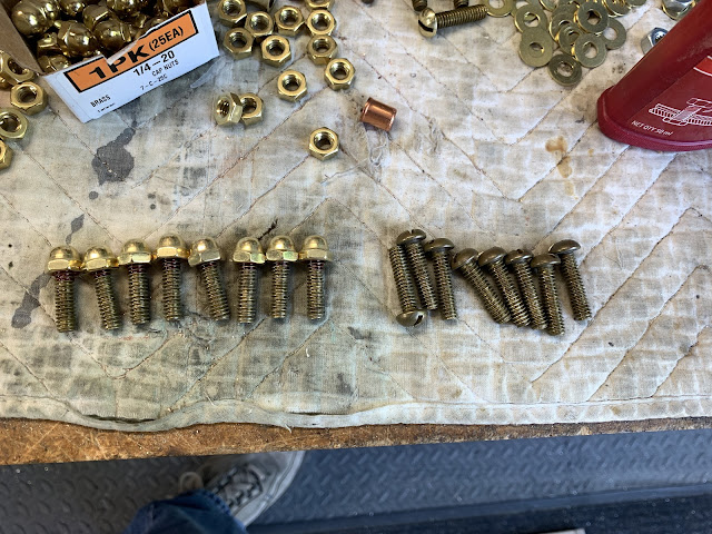 Before moving on to the side panels, it is time to finalize the bolts. The results of the polls are that most like the look of Crown Nuts. So I needed to figure out the best way to use them. I hit upon a method of making "Crown Headed Bolts" Such a thing does not seem to exist in any hardware catalog. So I made my own.